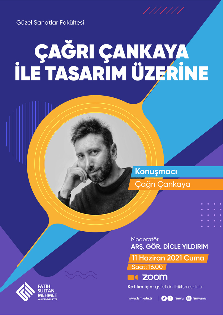 Güzel Sanatlar Fakültesi Grafik Tasarım Bölümünün düzenlediği Tasarım Konuşmaları dizisinin ilk konuğu, yenilikçi, multidisipliner bir tasarımcı ve sanat yönetmeni Çağrı Çankaya ile başlangıç yapıyor. Moderatör olarak Arş. Gör. Dicle Yıldırım'ın eşlik edeceği "Çağrı Çankaya İle Tasarım Üzerine" başlıklı etkinlik, 11 Haziran 2021 Cuma, saat 16:00'da gerçekleşecektir.