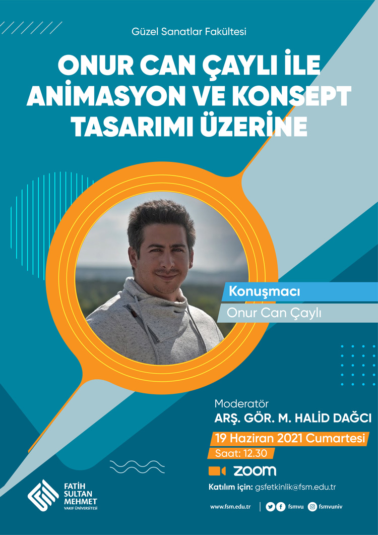 Güzel Sanatlar Fakültesi Grafik Tasarım Bölümünün düzenlediği Tasarım Konuşmaları dizisinin ikinci konuğu, Onur Can Çaylı oluyor. Moderatör olarak Arş. Gör. Halid Dağcı'nın eşlik edeceği "Onur Can Çaylı ile Animasyon ve Konsept Tasarım Üzerine " başlıklı etkinlik, 19 Haziran Cumartesi saat:12.30 da gerçekleşecektir.